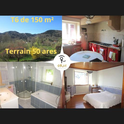 Surface habitable (en m2 env.) 150 Surperficie parcelle (en m2 env.) 5270 Nombre de pièces 5 Nombre de chambres 3 Nombre de salles de bain 1 Balcon Non Terrasse 1 Garage 2 Cave 1 Parking privatif 1 Exposition Sud CHAUFFAGE
